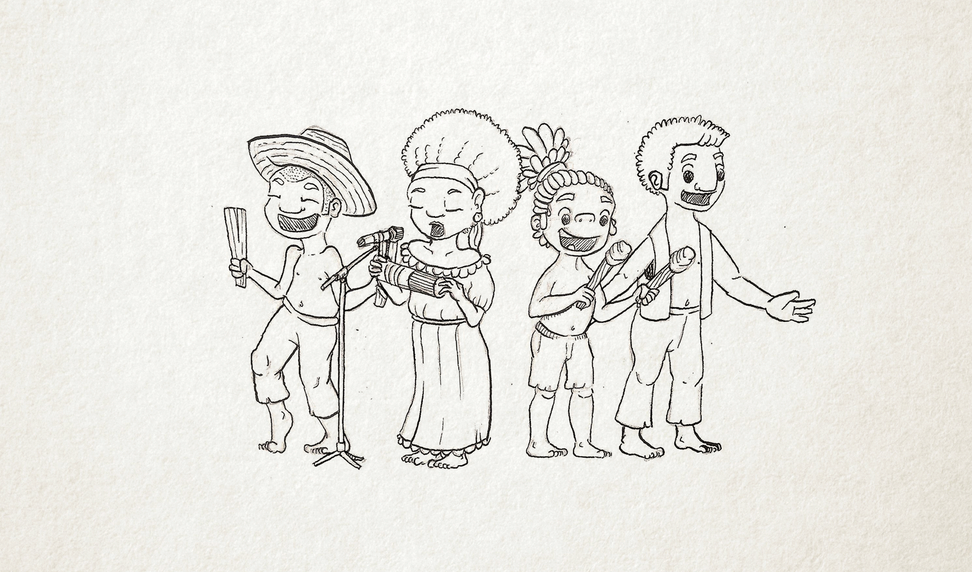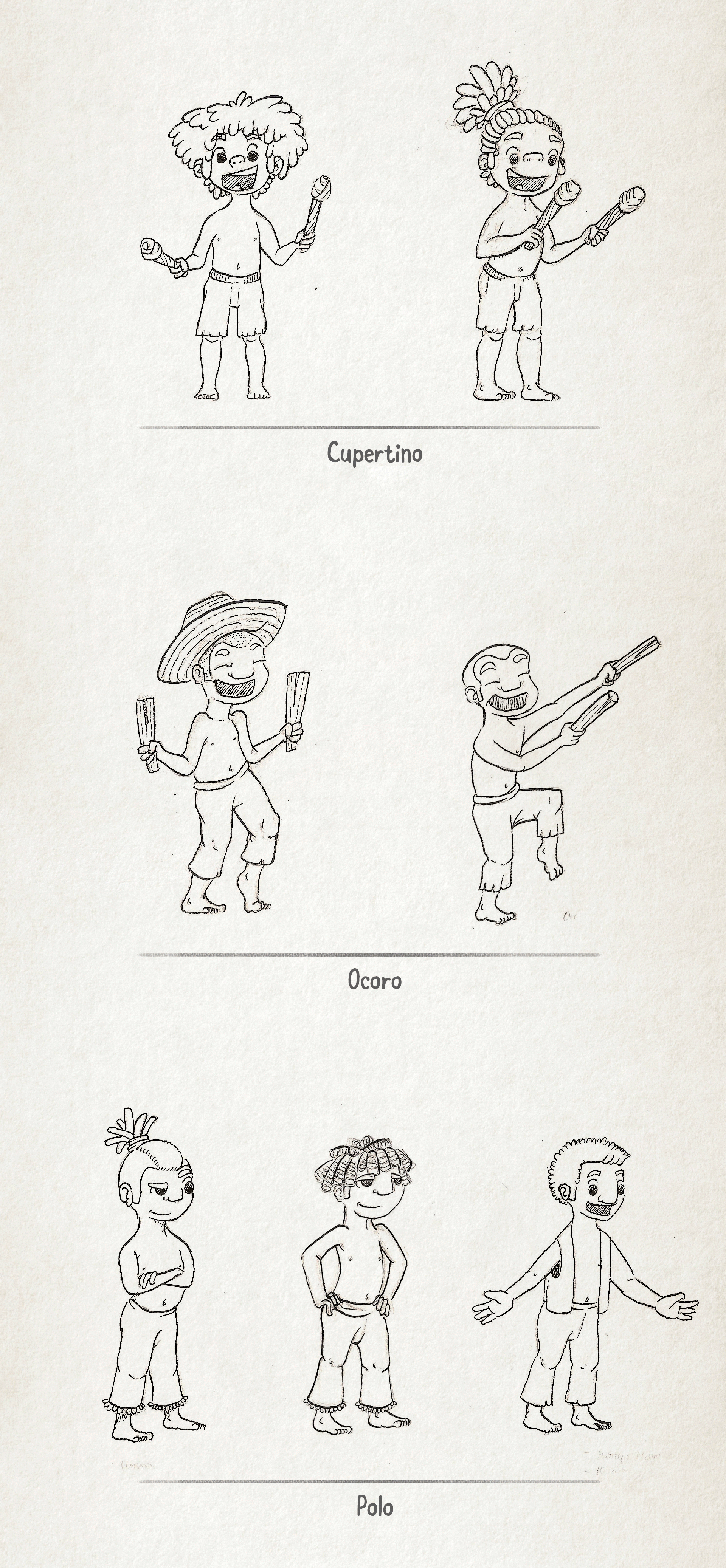 Para el desarrollo de esta experiencia fue necesario el rediseño de los personajes que hacían parte de la historia que se narraba, entre los cuales estaban Cupertino el personaje principal, Tomasa la Cantante del grupo y finalmente Ocoro y Polo, percusionistas de la banda. Todos juntos formaban una integración de música Folclórica, representando su pertenencia cultural.