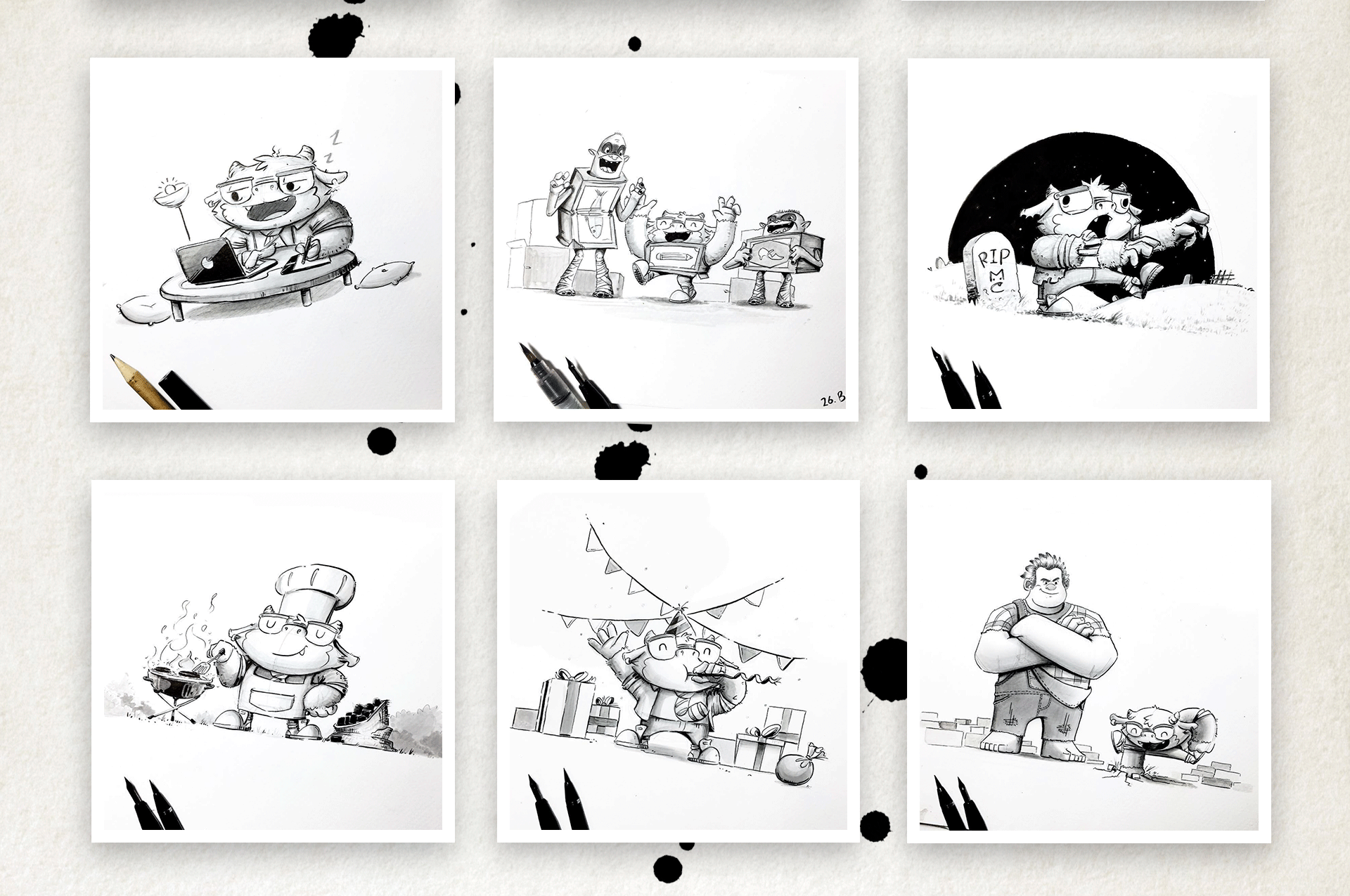 Hace un tiempo cree este pequeño personaje y durante el Inktober de 2016 lo utilice para exponerlo en diferentes situaciones