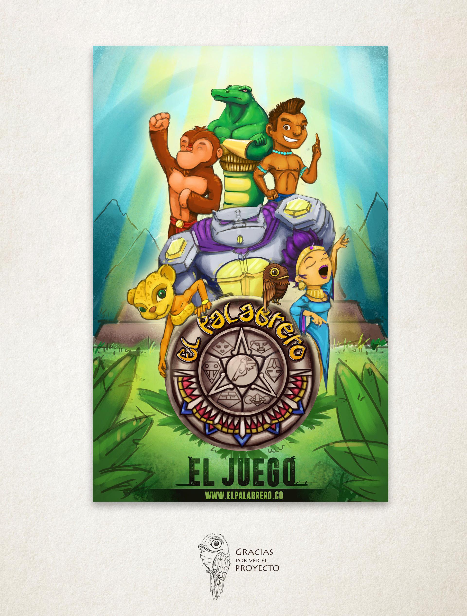 El contar con el diseño de cada uno de los personajes y el logo de la experiencia de juego (creado por Santiago Gomez), permiten realizar una composición, que simplifica los contenidos que ofrece el juego en una sola imagen.