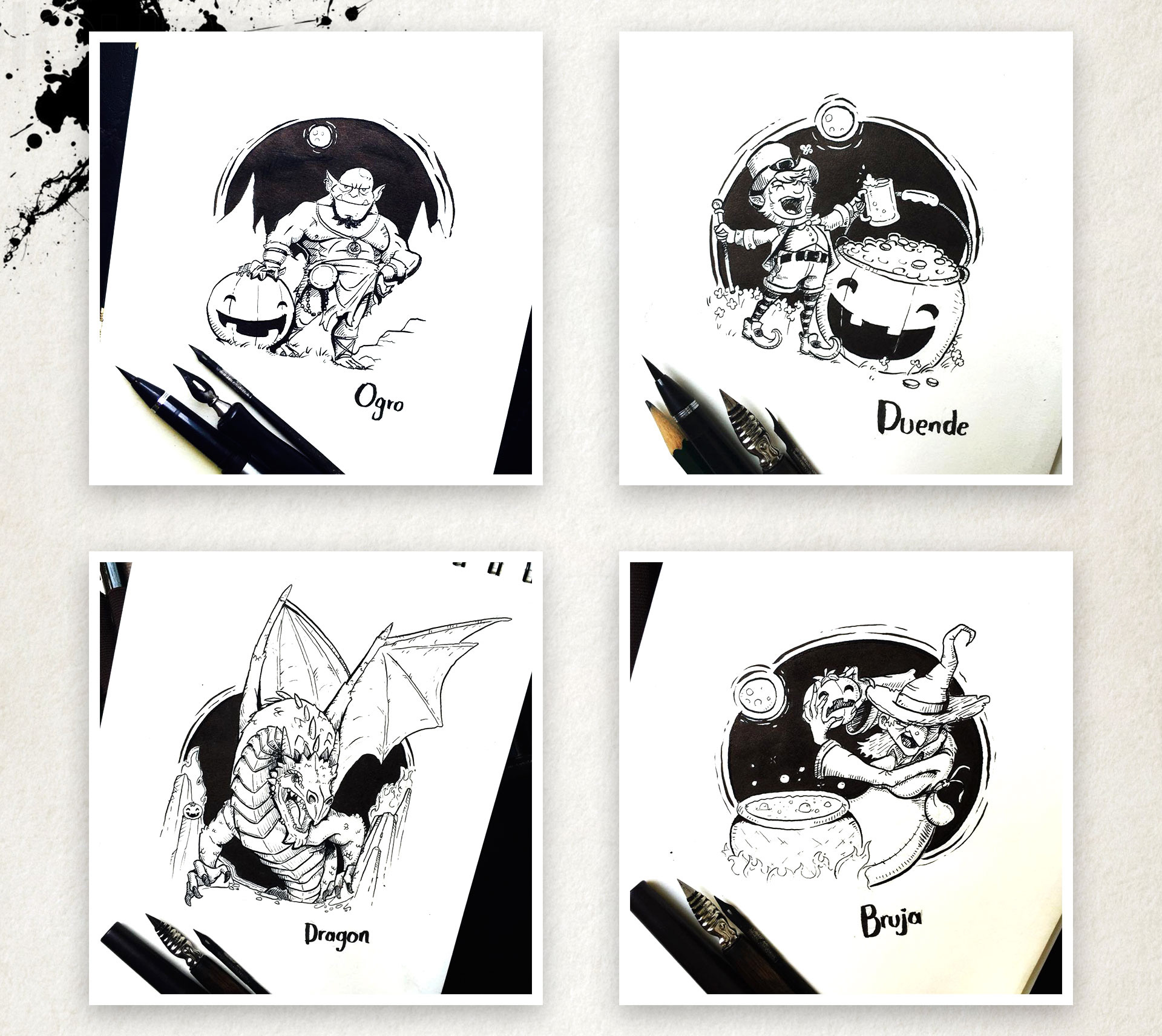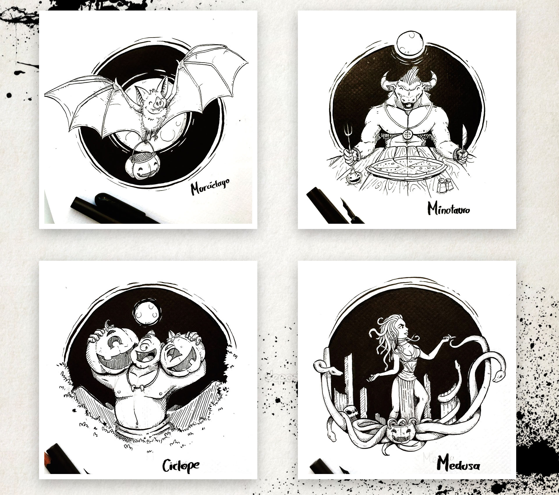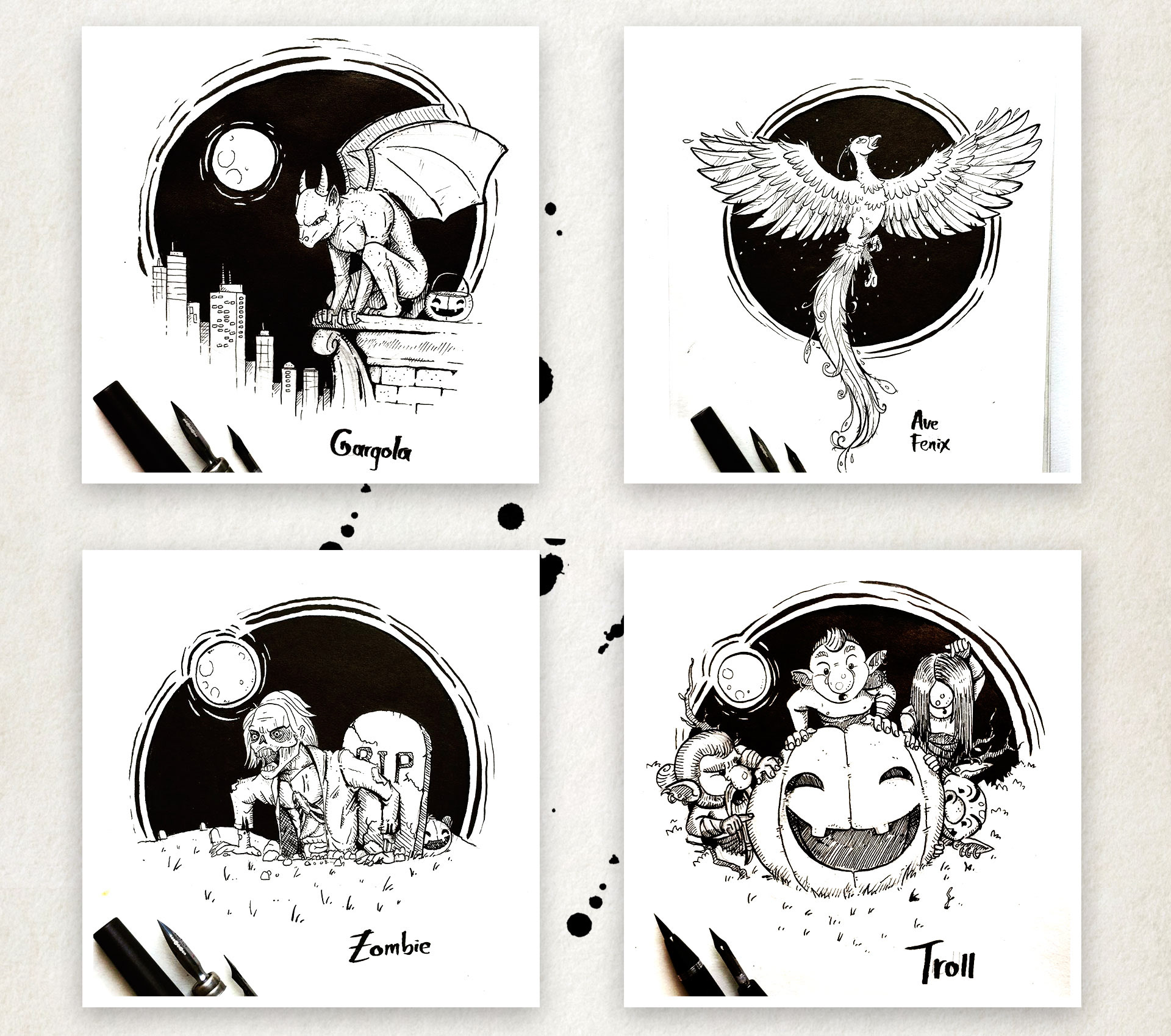 En Octubre de 2015 empecé con mi primer Inktober y para completarlo, diseñé una serie de diversos personajes, entre los cuales se pueden encontrar varios asociados a la mitología y a temas de fantasía. El listado de criaturas fue extraído del grupo de Facebook “The Big Draw Bogotá”, el cual recomendó el nombre de los 30 personajes para aquel mes.