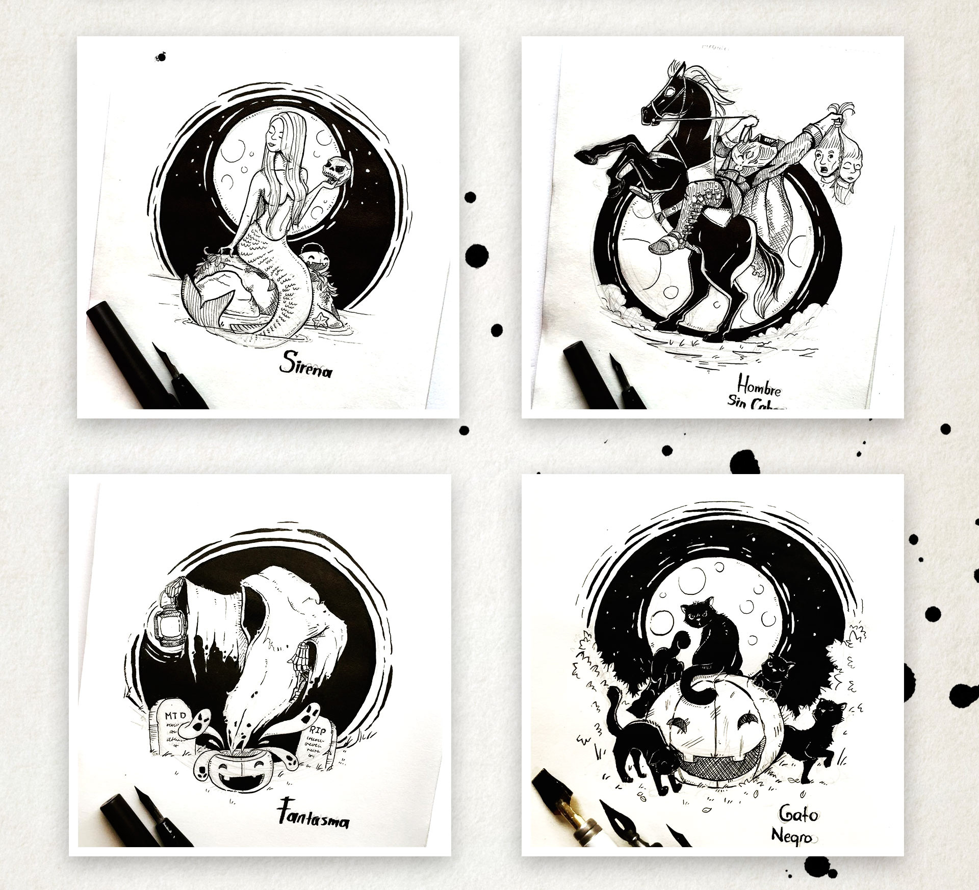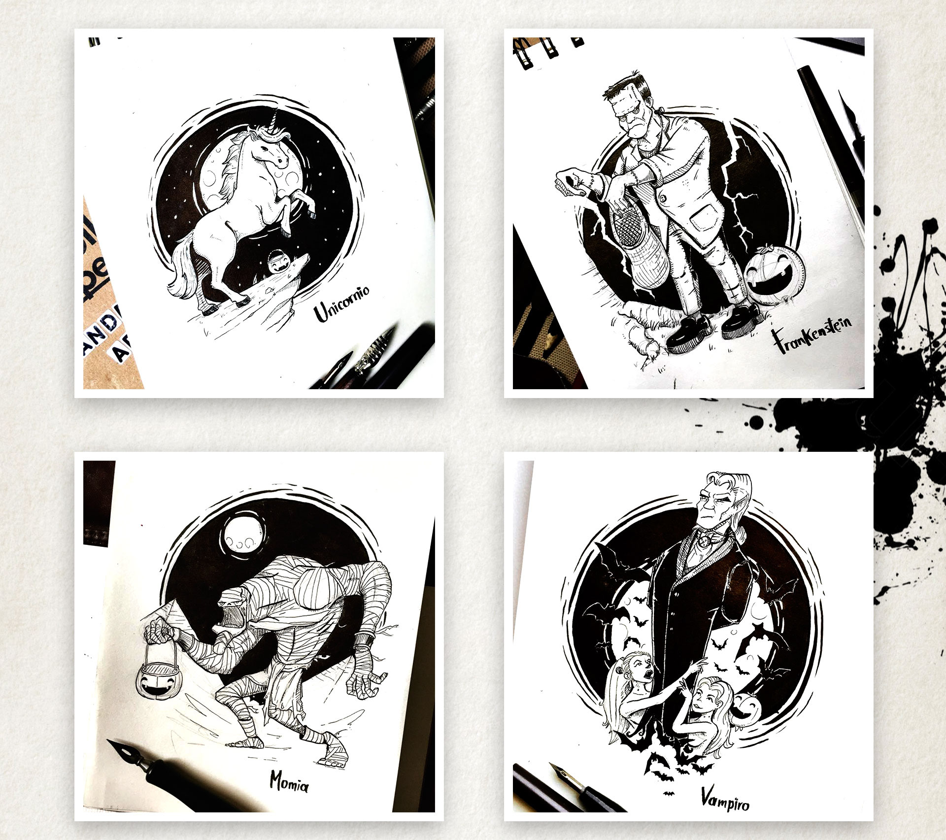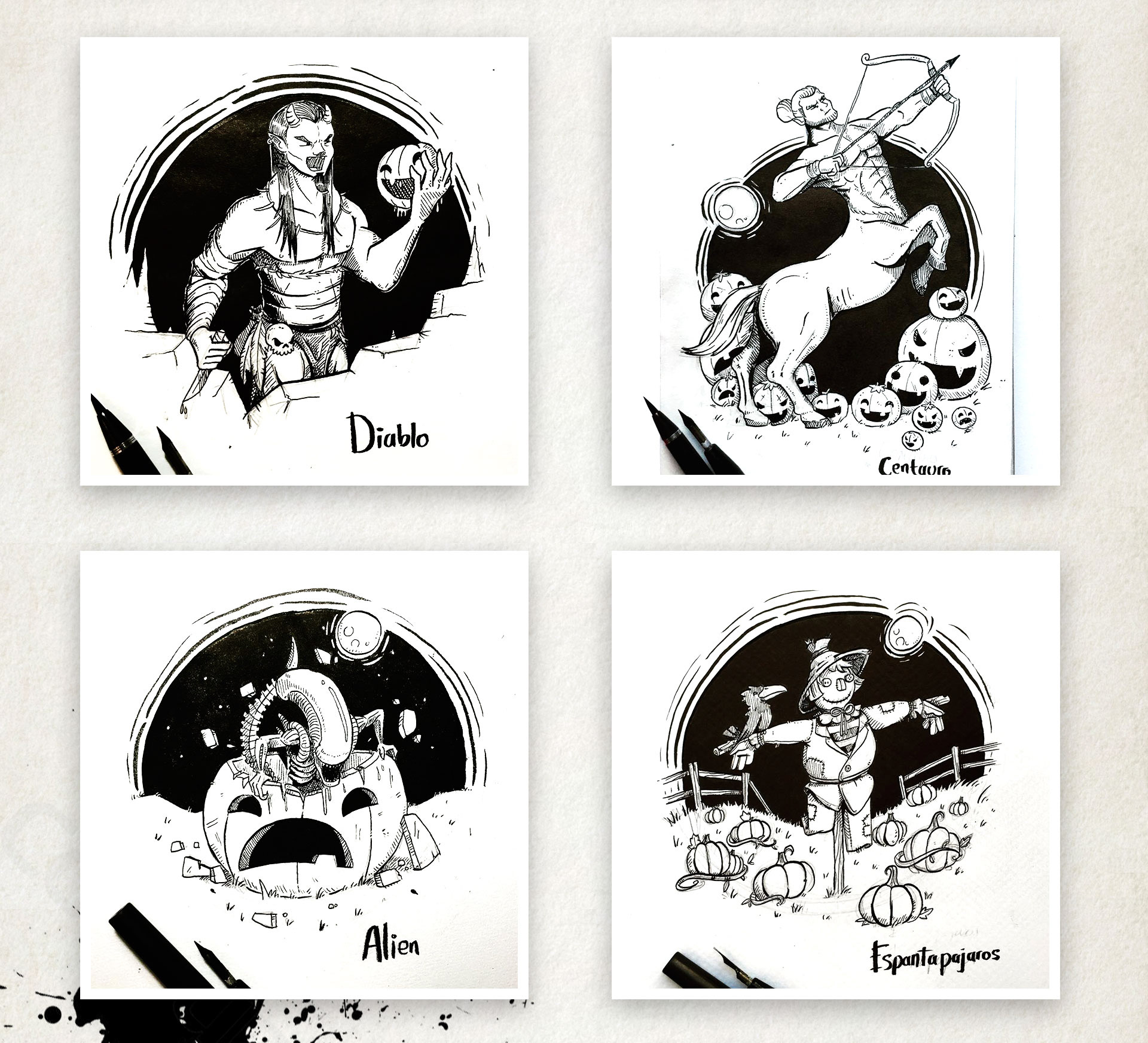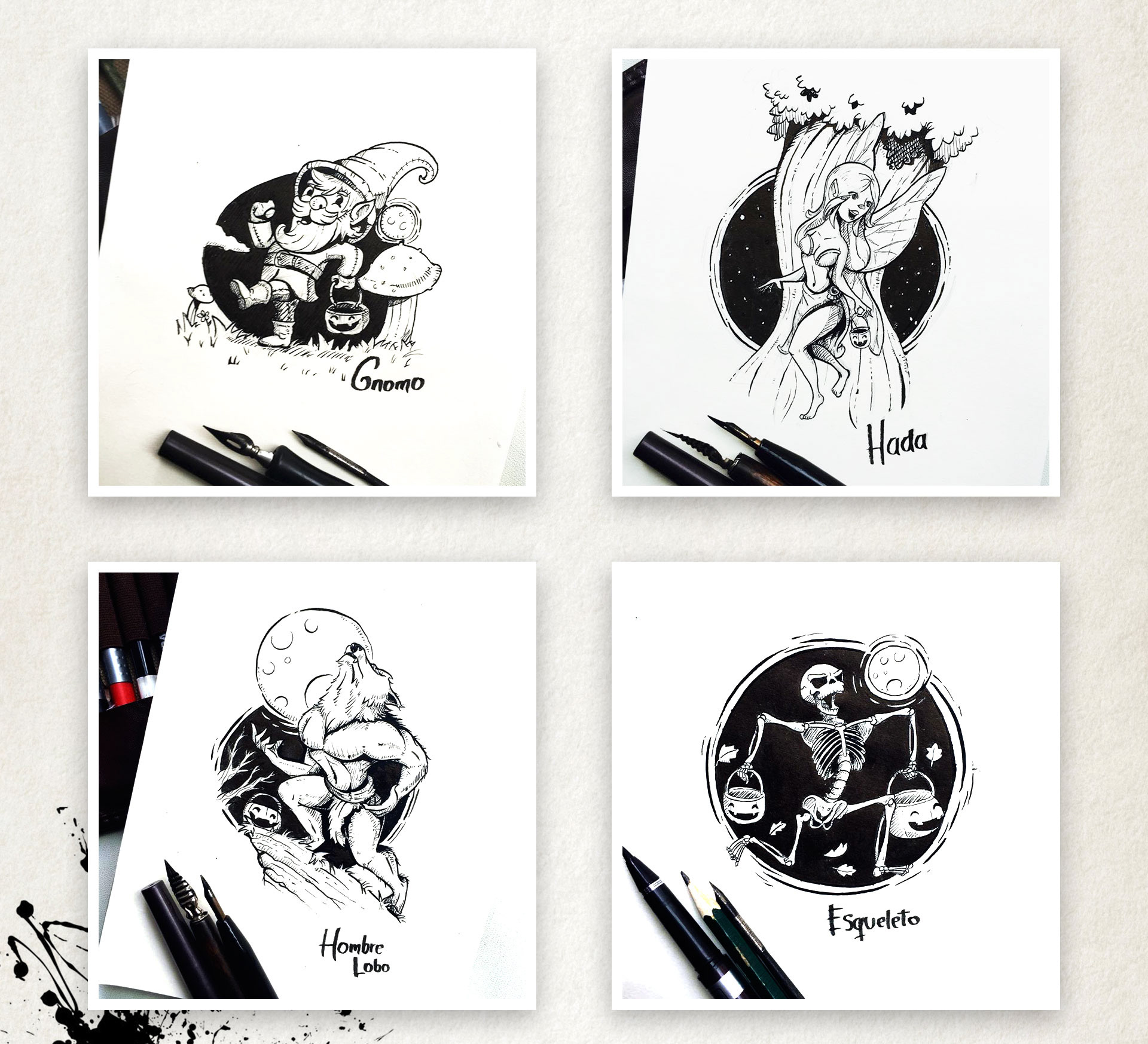 En Octubre de 2015 empecé con mi primer Inktober y para completarlo, diseñé una serie de diversos personajes, entre los cuales se pueden encontrar varios asociados a la mitología y a temas de fantasía. El listado de criaturas fue extraído del grupo de Facebook “The Big Draw Bogotá”, el cual recomendó el nombre de los 30 personajes para aquel mes.