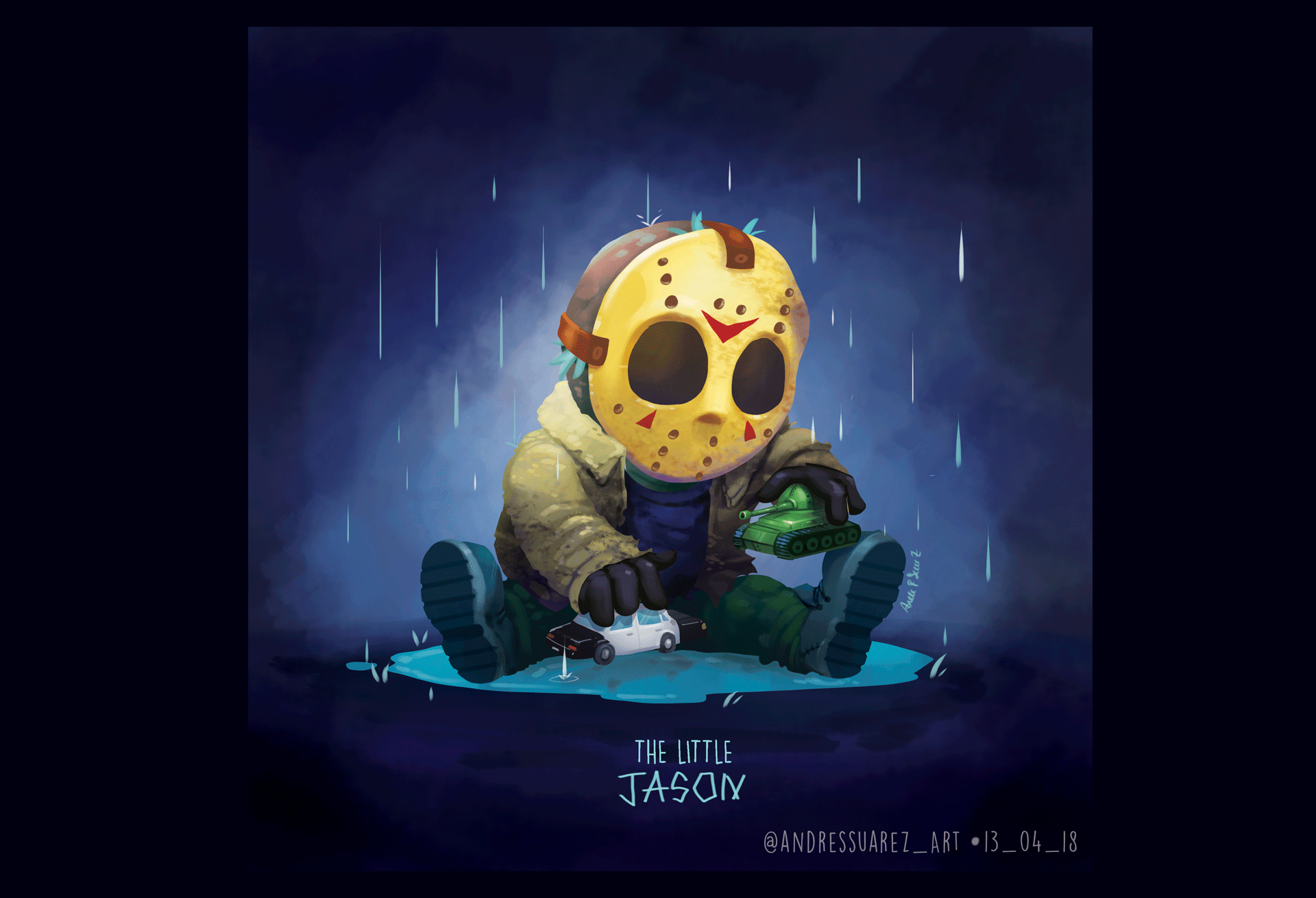 Porque algunos villanos no son tan malos despues de todo (: observa como el pequeño JASON disfruta de una tarde de juegos en el patio de su casa.